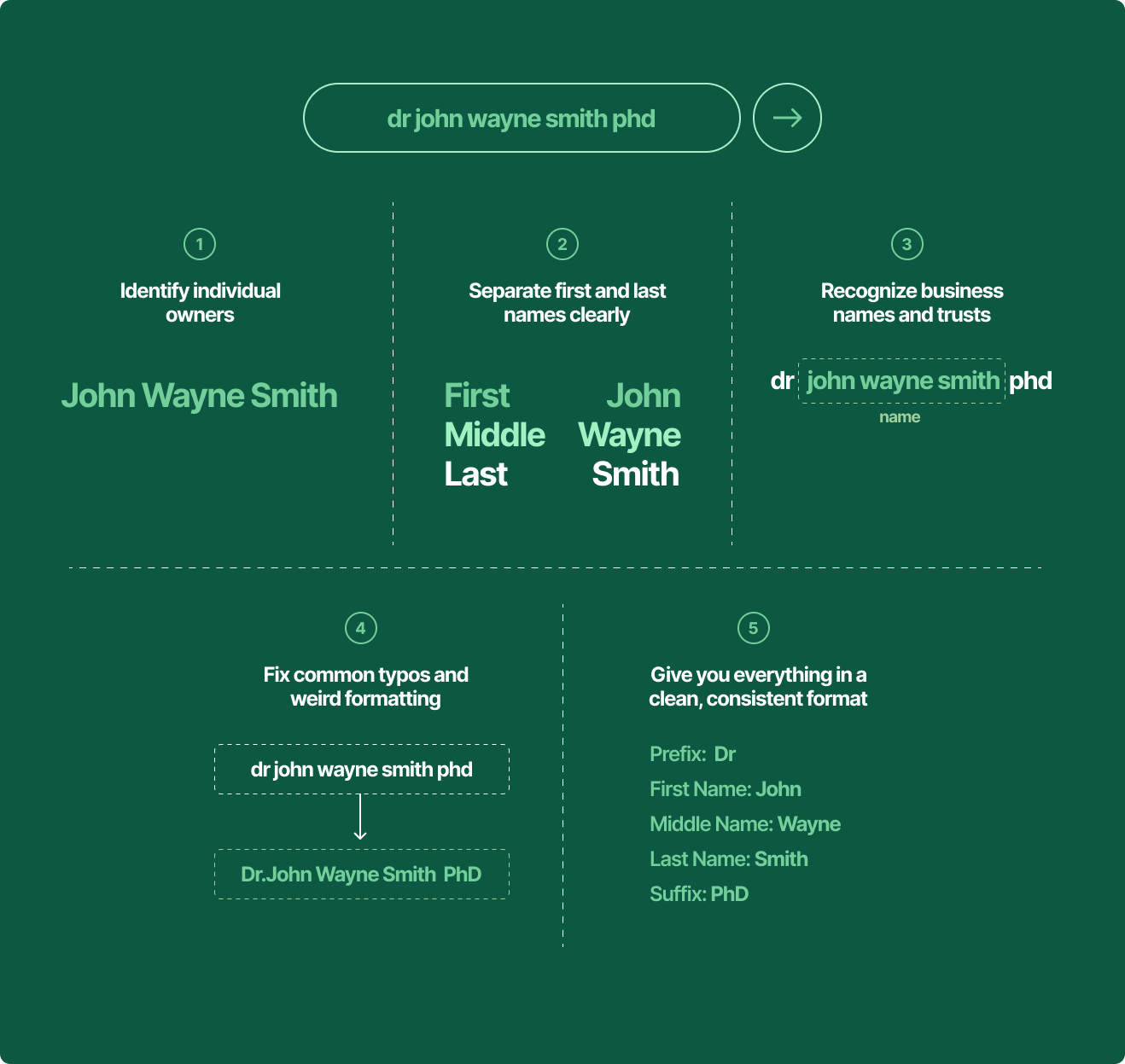 Picture this: You've just downloaded your latest batch of property owner data. You're ready to send out some perfectly crafted letters, but then you see it – a puzzle of misclassified names that look like they've been through a blender: