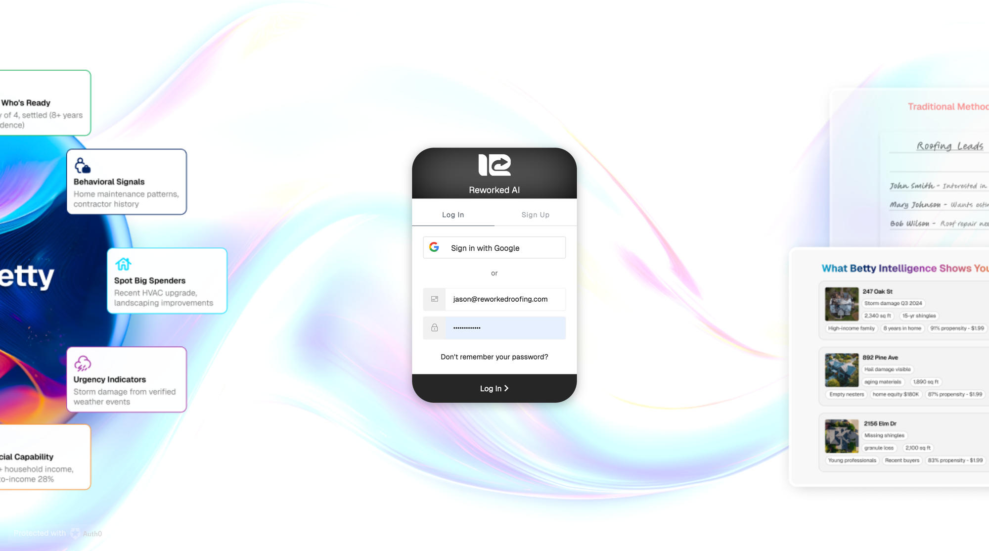 It's easy to find roofing opportunuties using Betty from Reworked.ai powered by Eagleview.